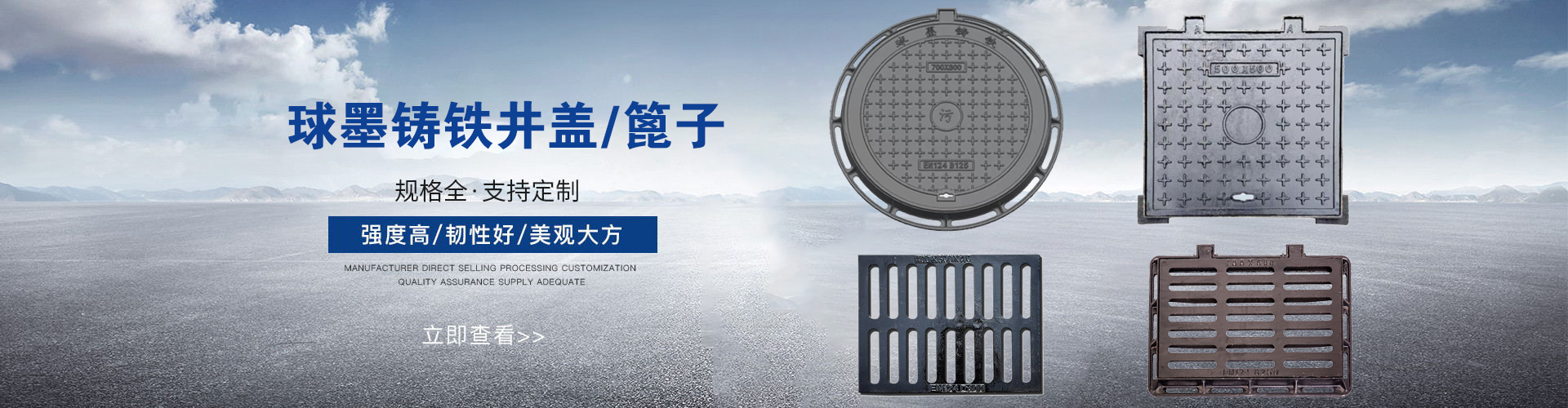 山东鑫佰艺金属制品有限公司主要生产:球墨铸铁井盖/球墨铸铁篦子/铸钢井盖/防爆破井盖/防沉降井盖/不锈钢盖板/不锈钢井盖/钢格栅/树脂盖板/树脂井盖等的球墨铸铁件厂家等的球墨铸铁件厂家。其产品广泛应用于城市给水、排水、消防等领域。。 公司拥有先进的专业设备、精湛成熟的制作工艺,产品规格齐全。公司严格按照科学完善的质量管理体系标准执行,以保证产品的优质性。
